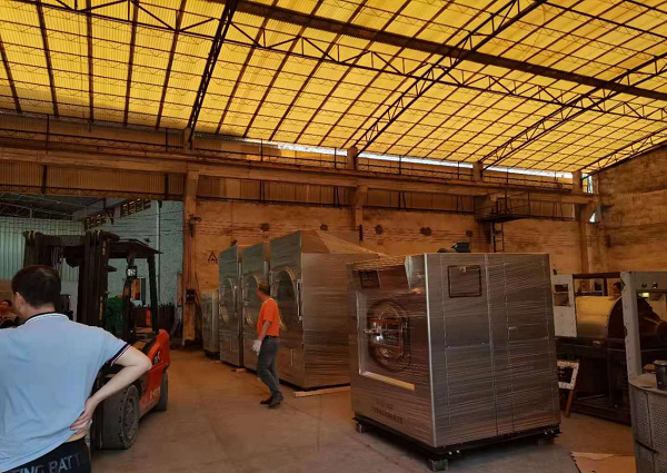 酒店大概有966張床位。按照入住率為80%計算。床位包括(雙人床配置:兩張床單、兩張被罩、兩個枕套、兩條毛巾,一條地巾)每張床位大概有3kg,布草的洗滌量大概在23202kg.配置兩臺120kg的全自動洗脫機,一臺50kg全自動洗脫機、兩臺100kg干衣機,一臺50kg干衣機、床單被套燙平,就使用3米長的雙輥筒熨平機。燙平機再搭配一臺3米的自動折疊機。西裝、風衣之類的服裝,使用10kg的自動干洗機、夾衣機、人像機和去漬臺后整理設備。